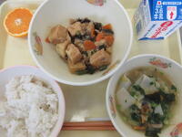 *ぎゅうにゅう *むぎいりごはん *トンクドウフ *ワンタンスープ *くだもの(みかん)