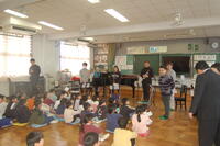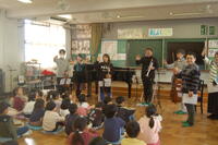 最後にサプライズで、坂小校歌を演奏していただき、演奏者の方々と子どもたちと一緒に合唱をしました。とても大きな声でのびのびと歌うことができ、とても楽しい、いい雰囲気が音楽室いっぱいにあふれていました。演奏後には、みんなでお礼の言葉を伝えました。プロの方による本物体験ができ、子どもたちにとって素敵な時間を過ごすことができました。演奏者の皆さん、このような機会を作っていただいた方々、本当にありがとうございました。