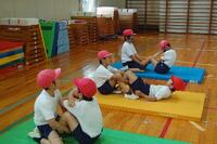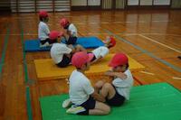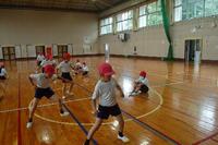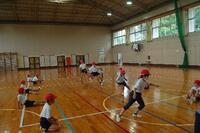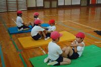 今日は、反復横跳びと上体起こしの記録をとりました。反復横跳びでは、リズムよく線を踏み越え、40回以上できている子がたくさんいました。