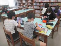 その後、委員会ごとに6月・7月の活動の計画を立てました。児童会では、「緑の少年団」を立ち上げ募金活動やあいさつ運動のこと、図書委員会では、読書月間もあるので、本の紹介のちらしをタブレットを活用して作成していました。また、放送・給食委員会では、好きな曲や好きな給食の献立などを全校にアンケートをとる準備や保健委員会は、これから水泳の授業も始まるので、AEDの使い方などについての講習をしていました。園芸委員会は、秋花壇に向けての花の種植えや春花壇の花の片付けをしました。