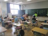 5・6年生が、5時間目にプール開きを行いました。快晴に恵まれ、気持ちよくプールに入りました。久しぶりにプールに入り、とてもうれしそうでした。最初に、だるまの形になって浮かんだり、大の字になって浮かんだりしました。その後、プールの周りを歩いて、流れるプールのように渦をつくりました。途中で歩く向きを変えたので、流れに向かって歩くのがとても大変そうでした。