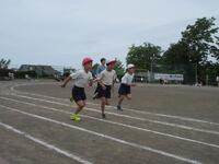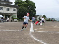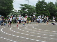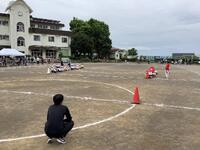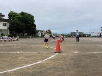 1,2年生のリレーは、コーンを回るので難しいのですが、スピードに乗ったバトンパスができました。