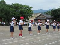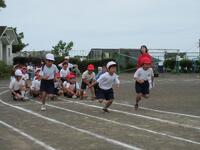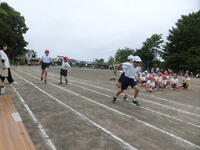 3,4年生60m走、1,2年生玉入れ、5,6年生80m走です。