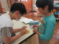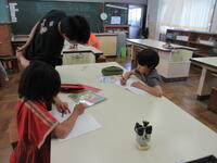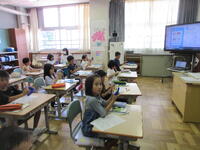 6年生理科「人と動物の体」です。呼吸によってはき出した空気の酸素と二酸化炭素の割合を調べました。普段の呼吸よりも激しい運動後のはき出した空気も気になり、気体検知管を使い、測定しました。予想と数値が違い、驚いていました。