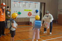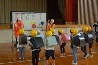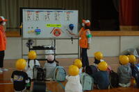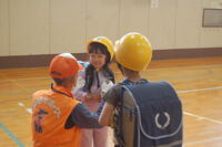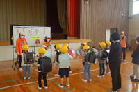 防犯サポーター、三島警察署、市役所等たくさんの方々のご協力で、1年生の「防犯教室」が行われました。防犯の映像を見た後、合い言葉「いかのおすし」について、「いか」ない、「の」らない、「お」おごえを出す、「す」ぐにげる、「し」らせる、を1つずつみんなで確認しました。また、ふえの使い方、防犯ブザーの使い方、大声でさけぶ練習をしました。