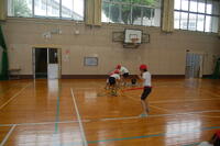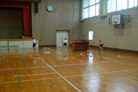 3・4年生が体育の授業で運動会の個人走の練習をしました。最初に個人走のやり方について説明をしました。最初にカードを引くこと、棒(バットをイメージ)でボールを転がしたり、打ったりしてゴールに入れること、平均台を歩くこと、フラフープをやることなどを説明すると子どもたちから「楽しそう」と声が上がりました。雨だったので、体育館での練習でしたが、子どもたちはしっかりとやり方とルールを確認していました。
