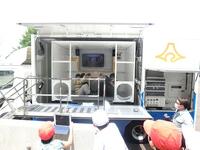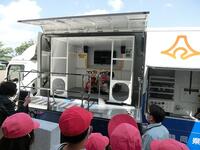起震車体験を行いました。三島市役所職員の方々の御指導のもと行いました。子供たちは、震度6弱の揺れを基本に体験しました。固定されたテーブルの支柱を握っていないと、体を維持できません。大人は「震度7」を体験できるということで、先生方は「震度7」を体験しました。大人の力でも、固定された支柱等を握っていないと、体を保持できません。もし、家の中で大地震が起きたらと、シミュレーションすると怖いですね。家具や電化製品などが固定されていないと、転倒したり激しく動いたりすることが理解できました。