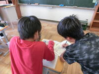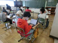 「話し合ってまとめよう」という教材で、「新入生へのプレゼントにふさわしい消しゴムをえらぼう」という学習課題の解決に向けて、一人一人が1人1台端末の「メタモジ(MetaMoji))」に、理由を付けてまとめていきました。友達と交流しながら、自分の意見を確かなものにしている子供もいました。