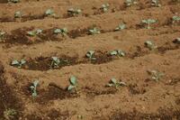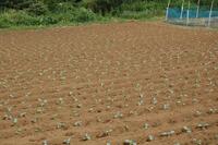 9月4日と6日に畑に植えたブロッコリーが畑に定植してきました。約2000株植えた苗が順調に大きくなっています。畝に苗植えや種まきなどをするときは、畝の中心に植えたり種まきをしたりするイメージですが、ブロッコリーの苗は、風の向きなどを考えて、畝の端に植えるのです。地域の方から教えていただきました。これも坂小の農事活動から得られた知識ですね。