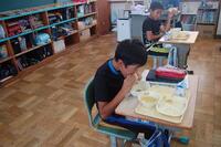 今日の給食は、月に一度のパンの日でした。メニューは。てりやきバーガーとパンプキンスープです。パンにとりのてりやきと野菜ソテーをはさんで、自分オリジナルのてりやきバーガーをつくっていました。自分でつくったてりやきバーガー、おいしそうに食べていました。