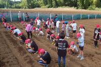 一人の分担は10穴です。1つの穴には、3つずつ種をまきます。ですので、一人あたり30粒の種をまきました。