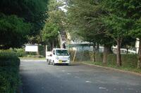 子どもたちが授業をしている午後の時間に、専門の業者さんが来てくださり、学校の周りの樹木の消毒を行いました。定期的に消毒をしていただいているので、子どもたちが安心して学習したり、運動場で遊んだりすることができます。業者さん、消毒ありがとうございました。
