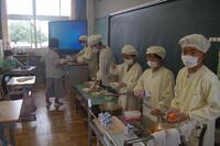 今日から待ちに待った給食が始まりました。久しぶりの給食でしたが、子どもたちは自分たちでしっかりと準備や配膳をすることができました。