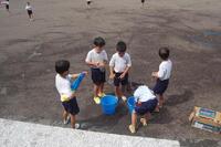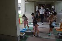1・2年生の生活科「水とあそぼう」の授業の様子です。子どもたちはそれぞれ、自分の水鉄砲を事前に持ってきていました。5時間目の暑くなっている時間に運動場で行いました。バケツや水道から水鉄砲に水を入れ、運動場に向けて発射したり、友だちや先生に発射したりしていました。ルールを守り安全面に気をつけながら、子どもたちは楽しく水遊びをしていました。最後は、しっかりとタオルで拭いて着替えて、元気よく帰っていきました。
