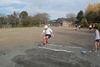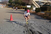 3・4年生体育「走り幅跳び」の授業の様子です。短い助走からふみ切って、遠くにとぶことを目標にしました。助走のスピード、ふみ切りの仕方、タイミング、腕のふり方などを意識して、練習を繰り返しました。練習後に記録を測りました。これからの練習で記録がもっと伸びるのが楽しみです。