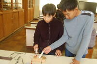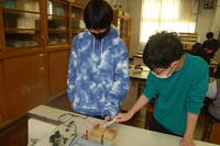 6年生理科「電気と私たちのくらし」の授業の様子です。「電熱線に電流を流すと発熱するだろうか」という課題に対して、実験をしました。電源装置や電熱線などをつなげ、実験装置を組み立てました。組み立てた後、発泡ポリスチレンを近づけても何も起こらなかったのですが、電源装置にスイッチを入れると、発泡ポリスチレンが簡単に切れました。熱の力で簡単に切れることに子どもたちは、驚いていました。
