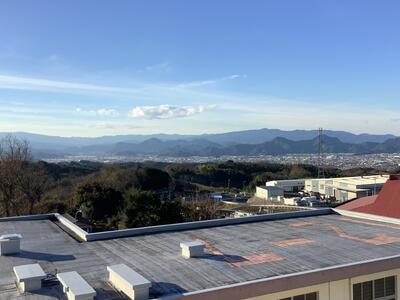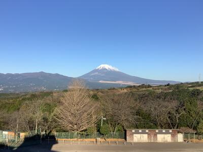 校舎屋上からの景色は圧巻です。3つの日本一「日本一高い山・富士山」「日本一深い湾・駿河湾」「日本一長い吊り橋・三島スカイウォーク」が眺められます(^_^)