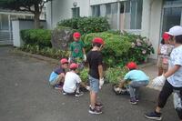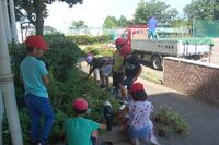 先週2年生・3年生が花壇の清掃ボランティアをしてくれました。春に咲いていて花や草を取り、夏花壇に向けての準備です。暑い中だったので短時間で行いましたが、たくさんの草を取ってくれました。2年生・3年生ありがとうございます。