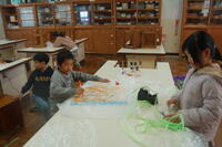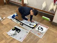 3時間目に書き初めをしました。みんな初めての書き初めと言うことで、最初に筆を入れるときは少し緊張していました。一度書いてみて字のバランスや大きさなどを一緒に確認してから合計3枚書いてみました。『の』や『山』のバランスを書くことが難しかったようです。次の授業でも落ち着いて丁寧に書けるようがんばってほしいです。