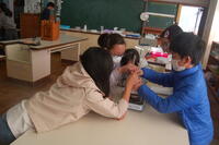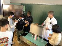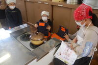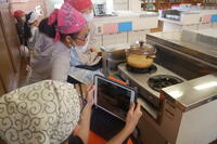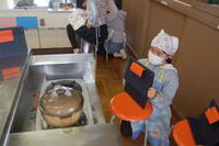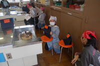 5年生家庭科の授業の様子です。①お米をはかって、洗います。②水をはかり、30分くらい吸水をします。③お米を炊きます。沸騰するまで2~5分強火にします。中火で5~7分、水が引いたら10~15分弱火にします。④10分くらい蒸らします。教科書などで手順をしっかりと確認しながらご飯を炊きました。少しお焦げがありましたが、美味しく炊くことができました。