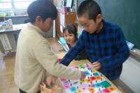 1年生が生活科の授業で「秋のおもちゃ作り」でどんぐりを使ったおもちゃを作りました。坂っ子カーニバルでの2年生以上のお兄さん・お姉さんがお店を出しているかっこいい姿を見て、自分たちもお店をという思いが膨らみ、お店を開きました。3校時目に、2年生を招待しました。どんぐりすごろくやどんぐり迷路、どんぐり的あてなどたくさんのお店が出ていました。