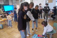 3・4年生が縄跳びを頑張っています。縄跳びカードには、前とび、後ろとびの技が全部で24種目あります。それぞれの技の跳んだ回数でレベルが上がっていきます。レベルが上がり、獲得した点数で25級から名人級になれるのかチャレンジしています。自分の獲得した点数により級が上がっていくので、子どもたちは意欲的に練習を頑張っています。