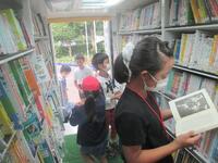 月の第2木曜日は、ジンタ号の日です。たくさんの子どもたちが返却と貸出をしました。車内へ入る場合は、5人まで人数制限をしたり、換気をしっかりしたりと、感染症対策をしていました。