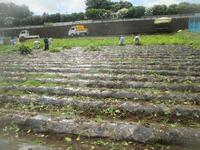 掘り起こすと、今年も真っ白なきれいなジャガイモがゴロゴロと出てきました。今年も豊作のようです。地面に何本もジャガイモの白い川ができました。昨年度より多くの収穫となりました。(昨年度は77コンテナでしたが、今年は96コンテナ、約2000kgの収穫です。)