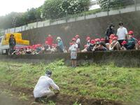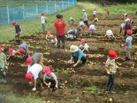 さあ、ジャガイモ掘りのスタート。1年生は初めてのジャガイモ掘りです。土に手を入れ、掘るたびにジャガイモがどんどん出てくるので、夢中になって、掘っていました。大きなジャガイモを掘ることができ、とても満足そうな顔をしていました。