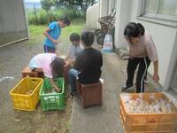 6年生と4年生が、ジャガイモの販売のために袋詰めを行いました。一袋の重さがだいたい同じになるように袋に詰め、テープでとめます。袋にジャガイモを詰める子、重さを確認する子、テープでとめる子、コンテナに数を数えて入れる子など、分担して作業を行いました。「楽しい!」「袋詰め、たくさんできた!」とどんどん袋に詰めていきました。