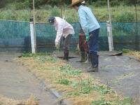 5月15日日曜日に地域学校協働本部を中心に、スイカ畑とトウモロコシ畑の手入れ作業を行いました。スイカやトウモロコシの畝の周りに防草シートをつけました。