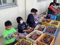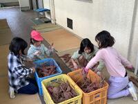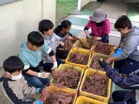 野菜大臣である4年生は、収穫したサツマイモのツル切りやゴザへ干すことをしました。収穫で疲れていても、黙々と作業をしていました。おかげで、すべてのサツマイモを乾燥させることができます。頼りになります。