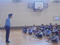 もし、不審者が校内に入ってきたら・・。自分の命を守るための防犯訓練を行いました。3階に侵入した想定で、教室に入られないようにしたり、避難をしたりしました。緊張感をもって取り組むことができました。