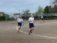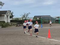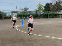 5,6年生体育の授業です。持久走で決められた時間で何周走ることができるか取り組んでいます。自分のペースを意識しながらも、近くを走る仲間と競いながら走っていました。まだ、始まったばかりでこれからどんどん記録が伸びていくと思います。