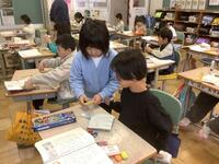 2年生国語の授業です。説明文を読み、その通りに工作をしています。書かれている内容が正しく伝わっているか確かめながらつくっていました。仲間に教えてもらうことで、気づいていました。