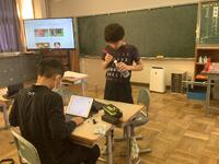 5年生総合的な学習の時間です。28日に開催される「坂っ子カーニバル」の準備に取り組んでいます。ポスター班、CM班、試作づくり班に分かれ、それぞれ相談しながら進めていました。自分たちでどのようなお店ができるか楽しみです。