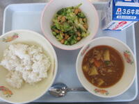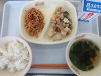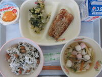 今日は節分です。年の数(地域によっては年より1つ多い数)を食べると1年を元気に過ごすことができるといわれている「大豆」や、においで鬼を追い払うと言われている「いわし」を献立に取り入れました。坂小の子どもたちが元気に1年間、過ごせますように