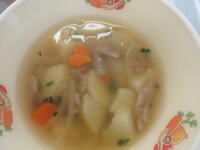 今日のポテトスープのにんじんはハートにしました全校で7個だけ流れ星のにんじんも入っています