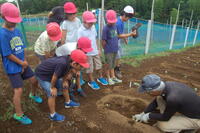 2年生以上は経験があるので、自分たちでどんどんまいていくことができました。自分の分の種まきが終わった子は、他の場所のたねまきをしてくれました。大根は、11月中旬ごろから収穫できる予定です。今年もおいしい大根ができるのをお楽しみにしてください。地域学校協働本部の皆様、協力し、温かく見守っていただきありがとうございました。
