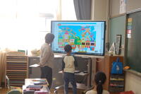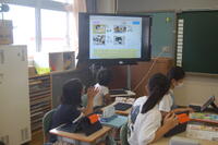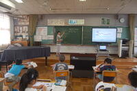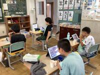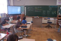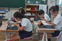 5年生理科「台風と天気の変化」の授業の様子です。台風がどのように動くのかについて学習しました。現在、台風14号が発生しているので、その台風の予想進路をタブレット型端末を活用して調べ、台風の動き方について話し合いました。