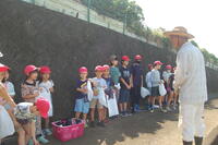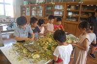 2時間目には、3・4年生が大根の間引きを行いました。野菜大臣である4年生は、説明を受けるとすいすいと間引きをすることができました。間引きが終わった後には、雑草抜きも最後まで頑張りました。3年生も上手に間引きすることができました。葉っぱ同士が少しからみ合っていましたが一つずつていねいに苗を選んで間引きをすることができました。どの学年も、間引きした苗は、お家でお味噌汁や油炒めなどして食べるのかな。