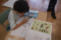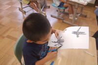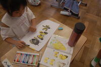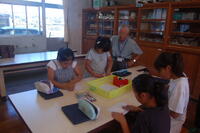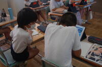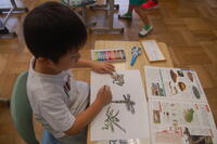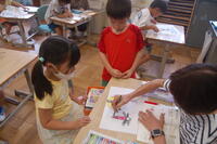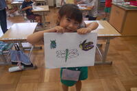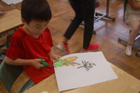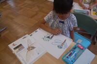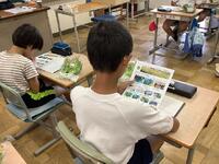 1年生生活科「いきものとなかよし」の授業の様子です。夏の生き物について、子どもたちからいろいろと発表してもらいました。自分が捕まえた昆虫を観察したり、図書室から借りてきた図鑑などを見たりしながら、昆虫の絵を描きました。どの子も細かいところまで丁寧に見て描いていました。
