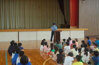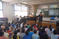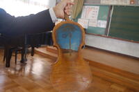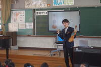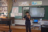 3時間目に出前講座として、東日本大震災の津波で流された木から作られた「TSUNAMIヴァイオリン」の演奏を全校児童で聴きました。三島市出身のヴァイオリン演奏者牧野順也さんが「花は咲く」を含む3曲を演奏してもらいました。最初にTSUNAMIヴァイオリンのお話がありました。本体部分には、流木や倒壊家屋の材木を使い、ヴァイオリンの心臓と呼ばれる「魂柱」には、東日本大震災で津波から生き残った「奇跡の一本松」の木片を使っているとことでした。牧野さんの演奏に子どもからは、「とてもきれいな演奏」「すごく感動した」など本物のヴァイオリンの演奏に聴き入ってしました。