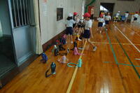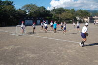 3・4年生体育「ポートボール」の授業の様子です。最初に、ボールを取ったり投げたりする練習をしました。ボールを高く上げてキャッチすることやバウンドさせてのキャッチなどボールを取る練習をしました。次にペアで投げる練習をしました。相手が取りやすいパスを意識して投げる練習もしました。最後にシュートの練習もしました。