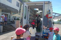 9月の第2木曜日は、ジンタ号の日です。7月以来のジンタ号であったので、子どもたちは楽しみにしていました。たくさんの子どもたちが返却と貸出をしました。いつも通り運動場でのジンタ号でしたので、暑さに気をつけながら本を借りました。たくさんの本の中から自分のお気に入りの本を選ぶことに夢中になっていました。