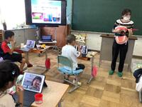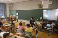 夏休み明け初めてのALTの先生との授業です。久しぶりに外国語の授業に子どもたちは嬉しそうでした。今日は6年生、5年生、2年生、1年生の授業でした。これまでの復習と新しいゲームなどを行い楽しく活動しました。