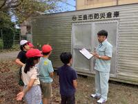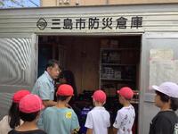 三島市役所危機管理課の方を講師に招き、坂地区安全マップや坂公民館にある防災倉庫の中を見せていただきました。防災について丁寧に説明してくださいました。倉庫の中には、たくさんの防災グッズがあることに驚きました。とくにプールの水を濾過してきれいな水として使うことができる装置があることに子どもたちは驚いていました。子どもたちの防災への意識が高まりました。