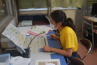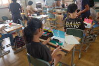 5年生図画工作科「糸のこ すいすい」の授業の様子です。夏休み前に糸のこを使って、板を自分の構想に合わせてパーツに切り取りました。その切り取ったパーツに色を塗りました。パーツを組み立てたときに合うようにきれいに色を塗りました。もう2時間色塗りをして、その後、パーツごとに組み立てる予定です。