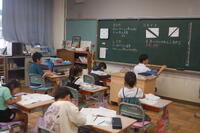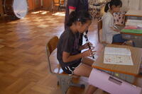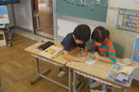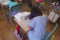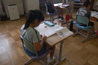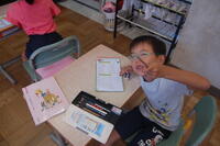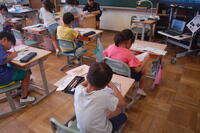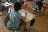 2年生が、これまで学習してきた漢字についてみんなで復習しました。先生が出した問題をノートに書きます。1問ずつ確認をしながら行いました。「わかった」「できた」と自信をもって言える子や少し自信がなさそうなだけど、一生懸命に考えて書いている子など、みんな頑張っていました。その後、個人で漢字の練習も行いました。