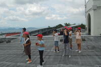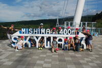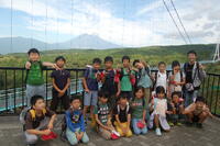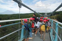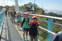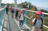 石畳を抜け、三島スカイウォークに到着しました。全長400mもあるつり橋を渡りました。すごい高さであったので、渡るのが少し怖かったです。みんなでゆっくり渡りました。天気がよかったので、景色がよく日本一高い富士山や日本一深い駿河湾も見ることができました。スカイウォークの途中では、坂小学校も見つけることもできました。歩くのがすごく大変でしたが、学区のことを学ぶよい機会となりました。